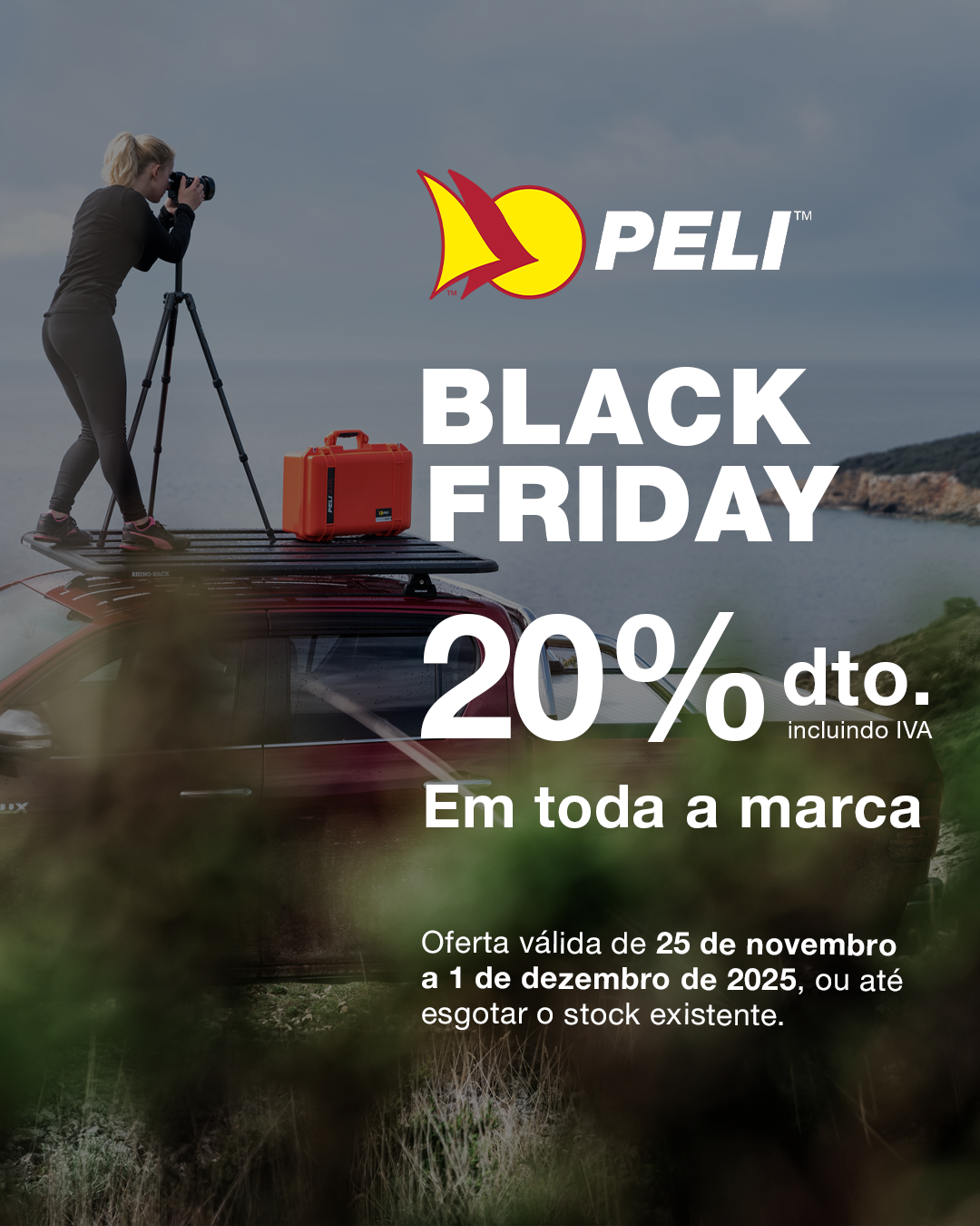 Esta Black Friday traz uma oportunidade única para quem procura proteção sem compromissos. De 25 de novembro a 1 de dezembro de 2025, toda a gama de malas Peli estará com 20% de desconto.