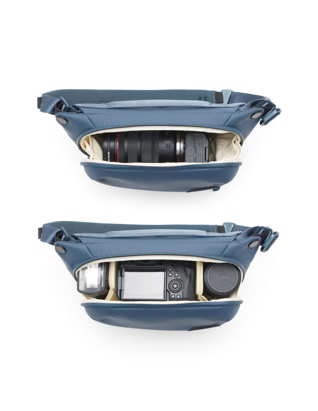 La bolsa minimalista ideal para una cámara. Ideal para un solo cuerpo+objetivo y unos pocos accesorios. También es ideal para llevarla a diario o de viaje. Una bandolera que también se puede llevar a la cadera.