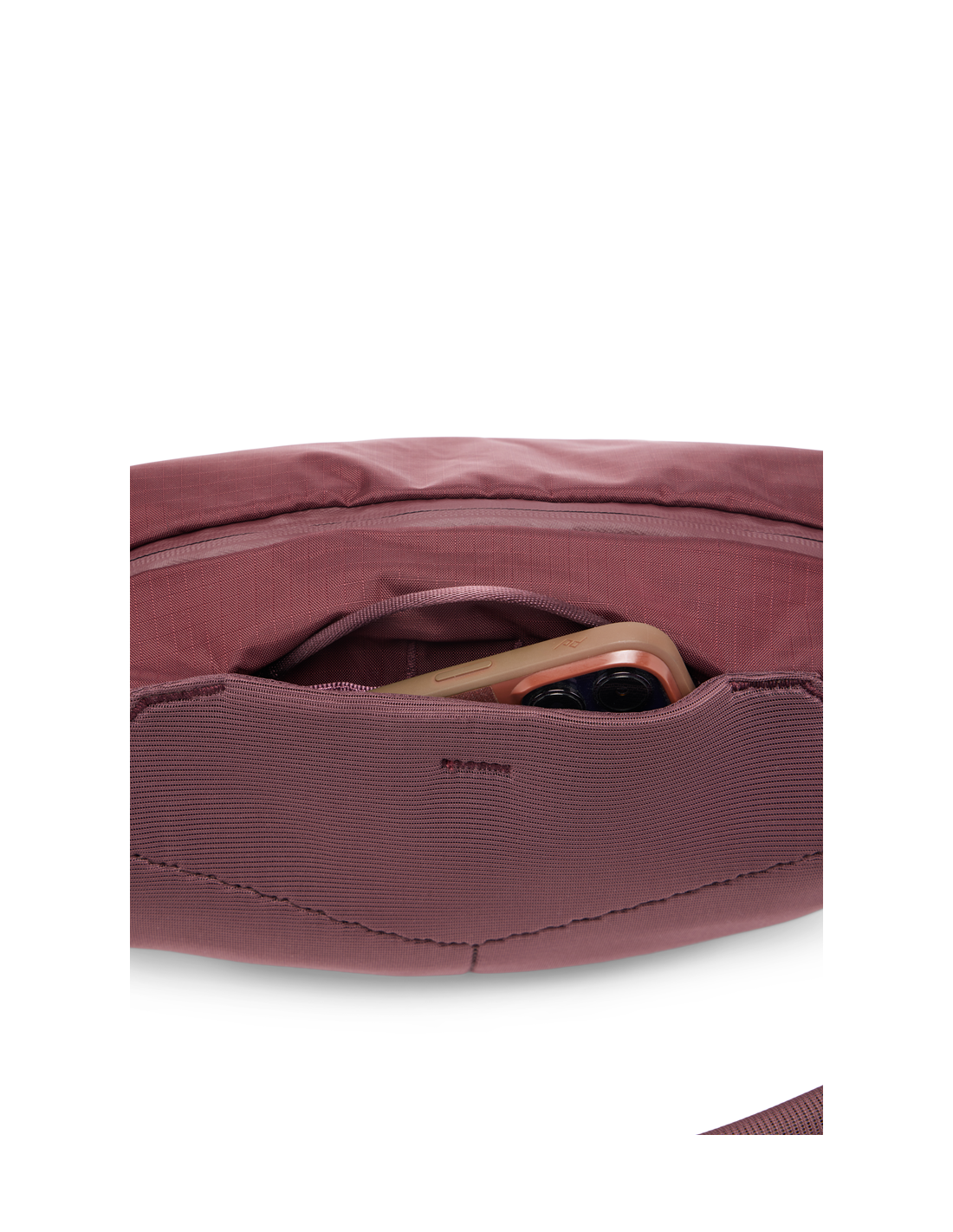 El teléfono está pensado para ser introducido en ángulo. La abertura del bolsillo es más estrecha y tiene un cierre magnético para evitar que el teléfono se caiga.